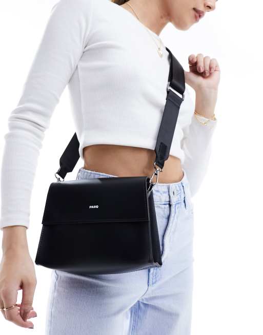 PASQ - Klassieke crossbody tas met flap aan de bovenkant in zwart