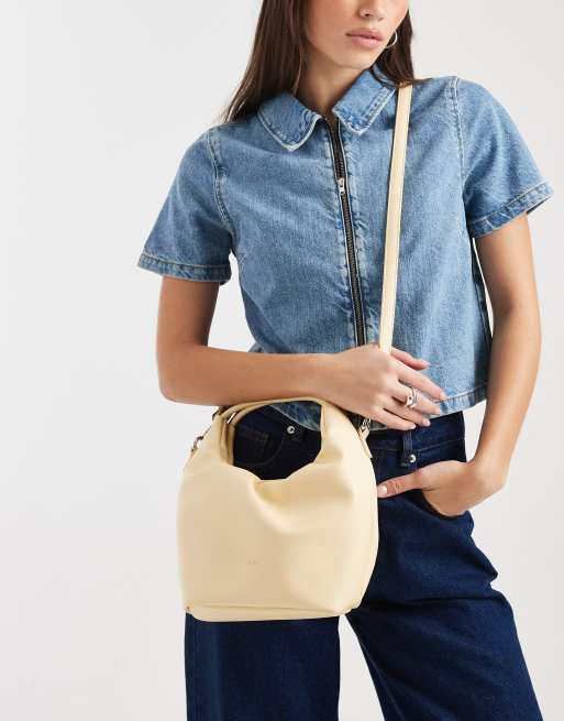 PASQ - Kleine crossbody tas met handvat aan de bovenkant en hengsel in botergeel