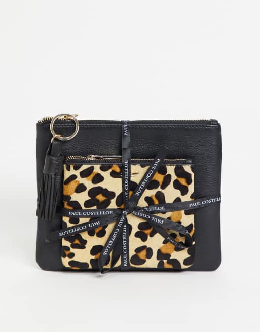 Paul Costelloe - Cadeauset met leren make-uptas en etui in luipaard en zwart