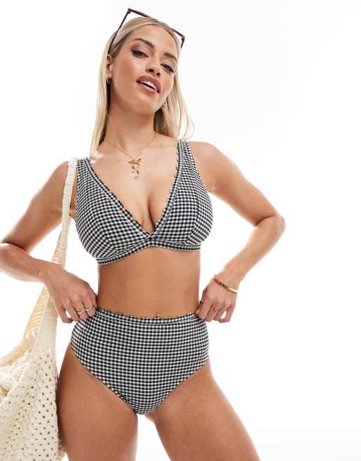 Peek & Beau - Grote Cupmaten - Bikinibroekje met hoge taille en gingham ruit in zwart en wit