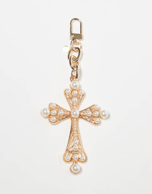 Petit Moments - Met parels versierd kruishangertje voor aan tas versierd in goud