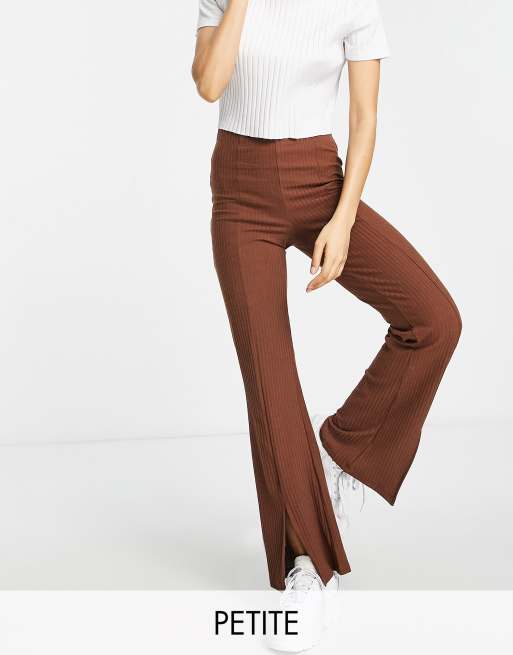Pieces Petite - Flare-broek met split in de zoom in bruin