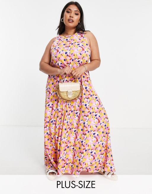 Pieces Curve - Lange jurk met racerhals in felgekleurde print
