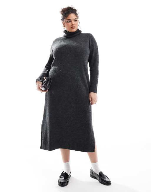 Pieces Curve - Maxi trui jurk met col in gemêleerd donkergrijs