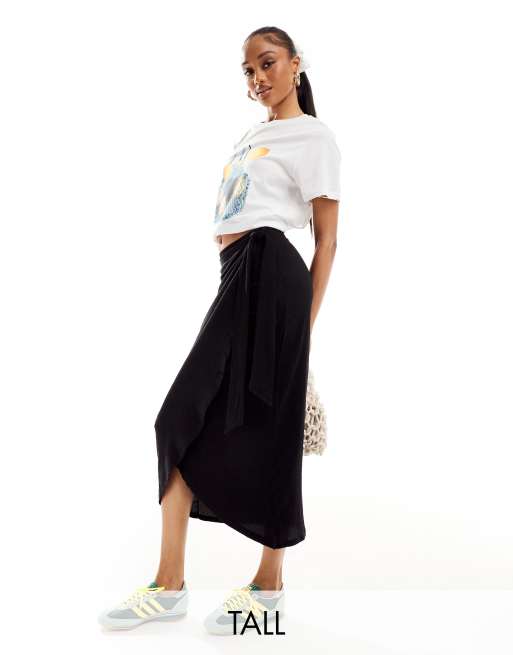 Pieces Tall - Midi rok met overslag in zwart