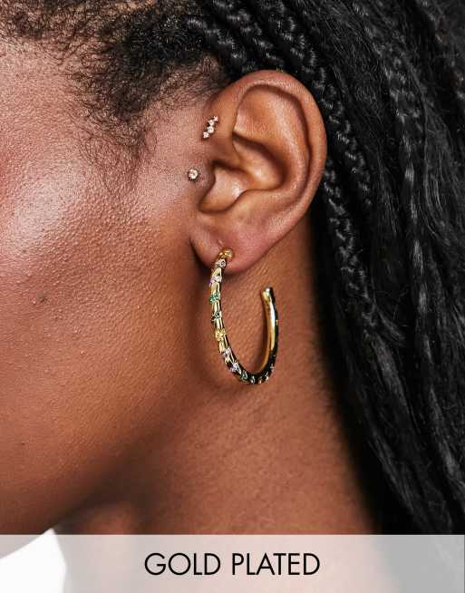 Pieces - 18K vergulde grote oorringen met meerdere stenen in goudkleur