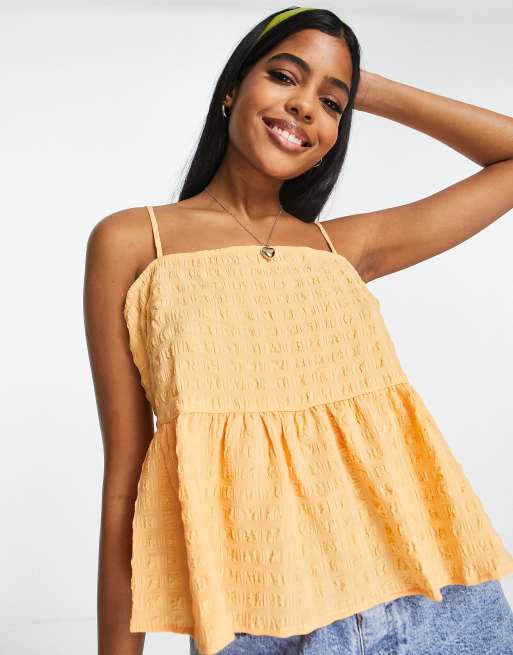 Pieces - Camitop met textuur en peplum in perzik