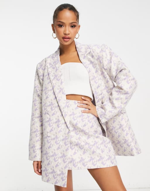 Pieces - Co-ord set met blazer en minirok in lila jacquard