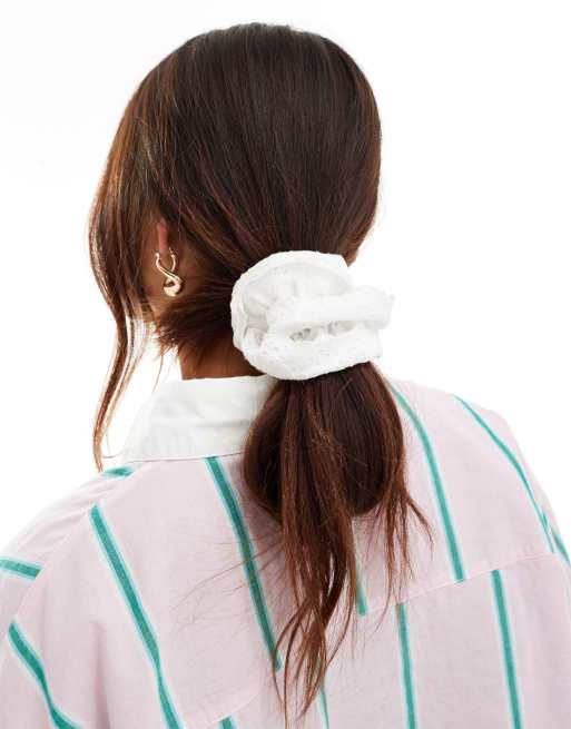 Pieces - Dubbele scrunchie met broderie in wit
