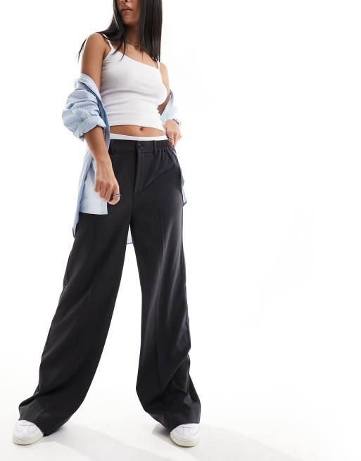 Pieces - Elegante broek met figuurnaden en wijde pijpen in antraciet