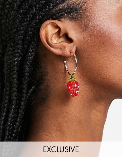 Pieces - Exclusives - Handgemaakte oorringen met aardbeienhangertjes in rood