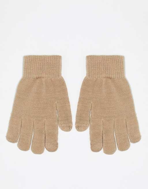 Pieces - Gebreide touchscreen-handschoenen in camel