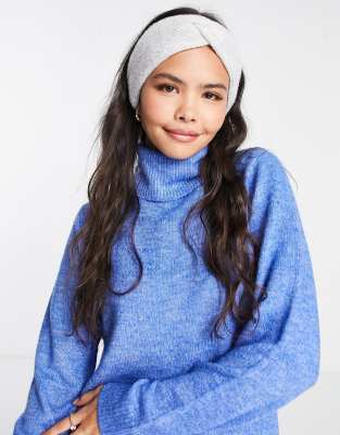 Pieces - Geribbelde hoofdband met gedraaide voorkant in lichtgrijs