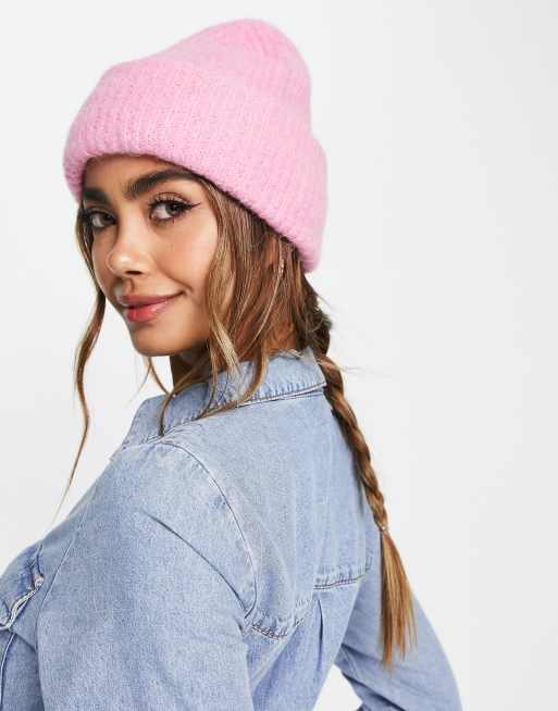 Pieces - Grof geribbelde beanie in roze