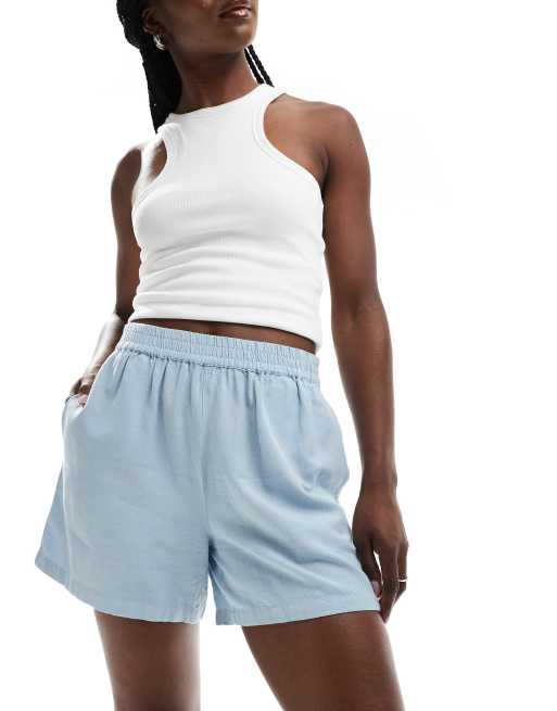 Pieces - Hardloopshort van linnenmix in babyblauw