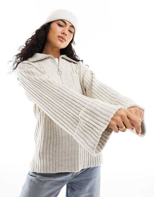 Pieces - Hoogsluitende gebreide trui met korte rits in lichtbeige