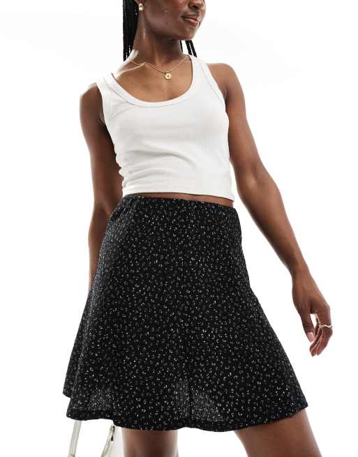 Pieces - Jersey minirok met textuur in zwart met bloemenprint