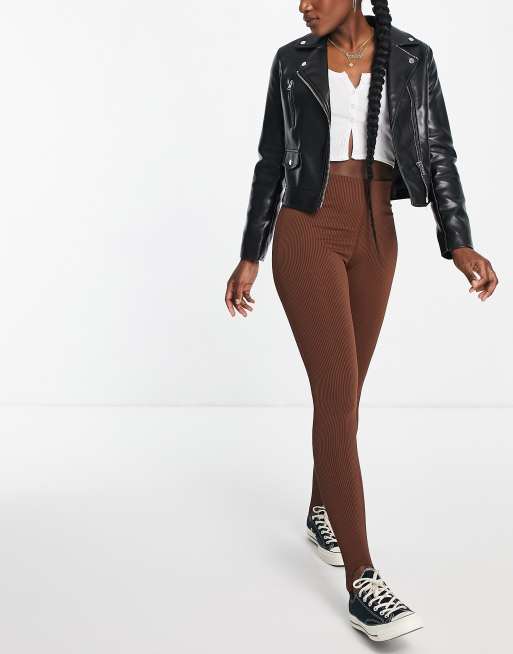Pieces - Legging met stijgbeugels in chocoladebruin