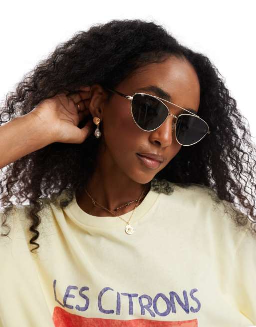 Pieces - Metalen zonnebril met cateye montuur en zwart getinte glazen in goud
