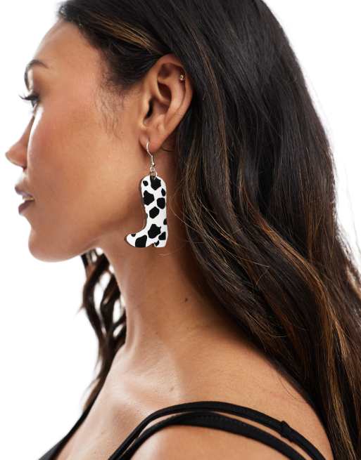 Pieces - Oorbellen met cowboylaars met koeienprint