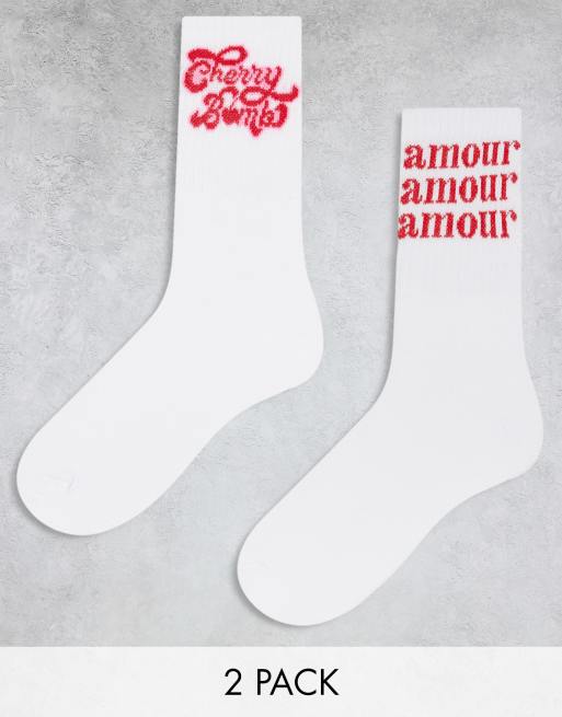 Pieces - Set van 2 paar sokken met slogan in wit en rood