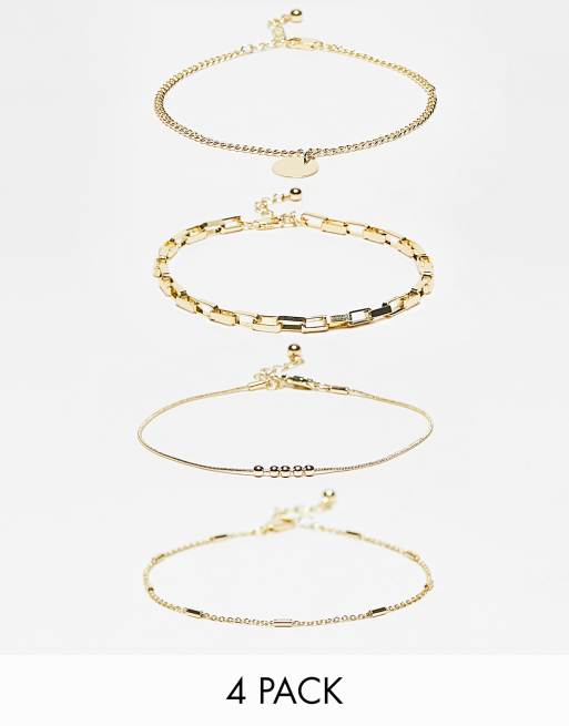 Pieces - Set van 4 enkelbandjes in goud
