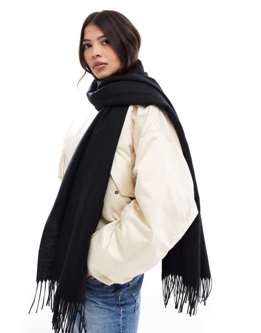 Pieces - Sjaal met kwastjes in zwart
