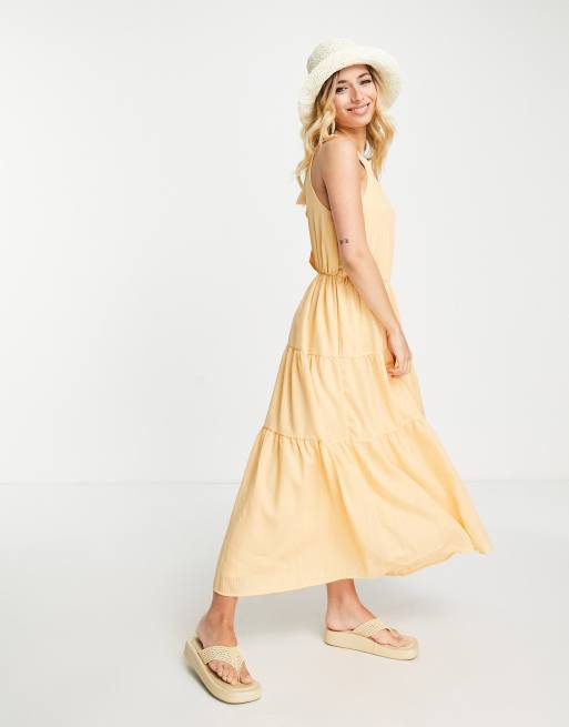 Pieces - Tiered maxi jurk in oranje - ORANJE