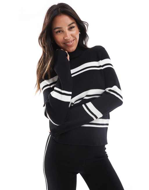 Pieces - Top met col en strepen in zwart en wit
