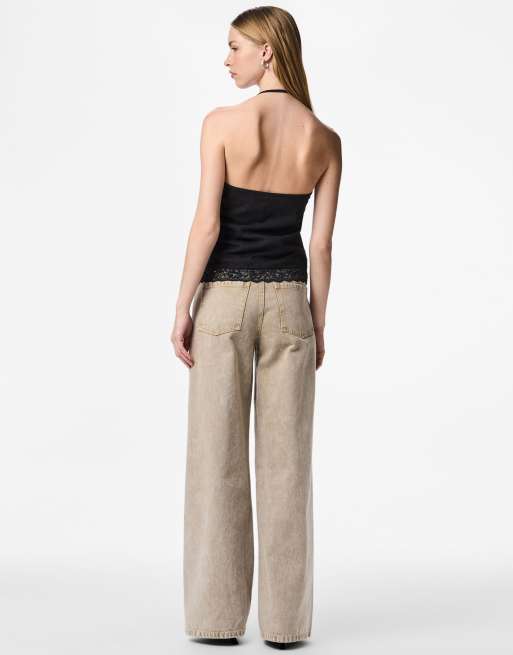 Pieces - Top met halternek in zwart