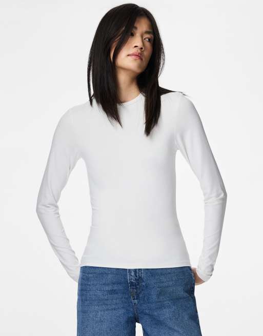 Pieces - Top met lange mouwen in felwit
