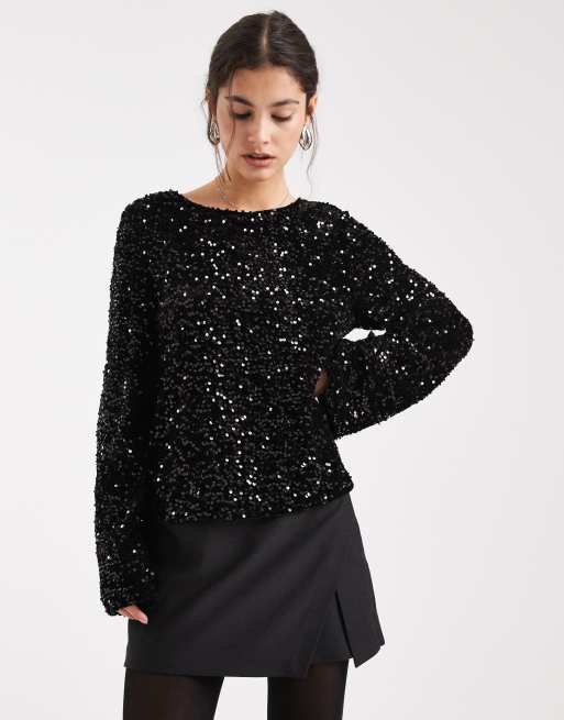 Pieces - Top zonder achterkant met lovertjes en satijnen strik op de rug in zwart
