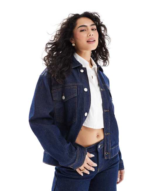 Pieces - Truckerjack in donkerblauw denim, deel van co-ord set