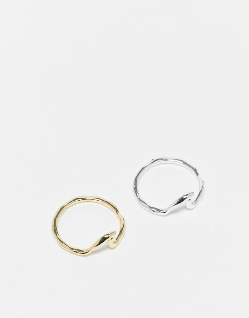 Pieces - Vergulde ring met golf detail in verpakking van twee, in goud en zilver