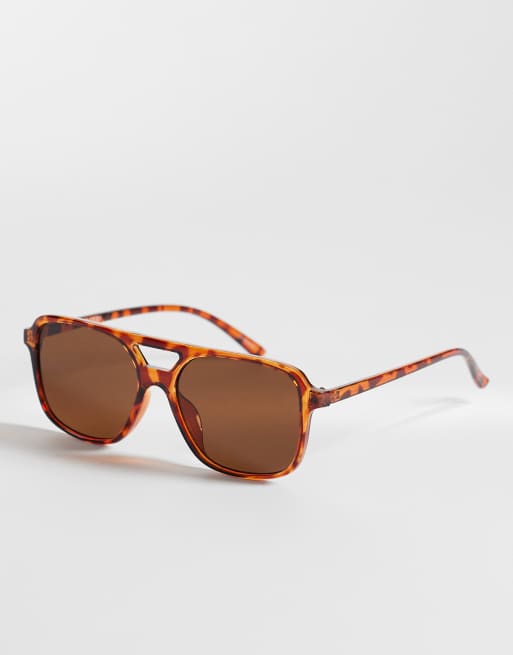 Pieces - Vierkante zonnebril met dik montuur in tortoise