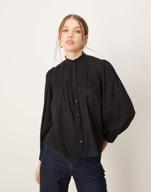 Pimkie - Doorschijnend hoogsluitend overhemd met geplooid detail in zwart