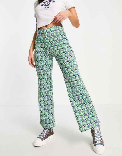 Pimkie - Gebreide flare-broek met hoge taille in groen, deel van co-ord set