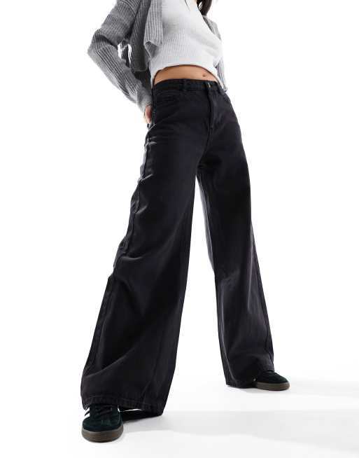 Pimkie - Jeans met wijde pijpen in zwart met wassing