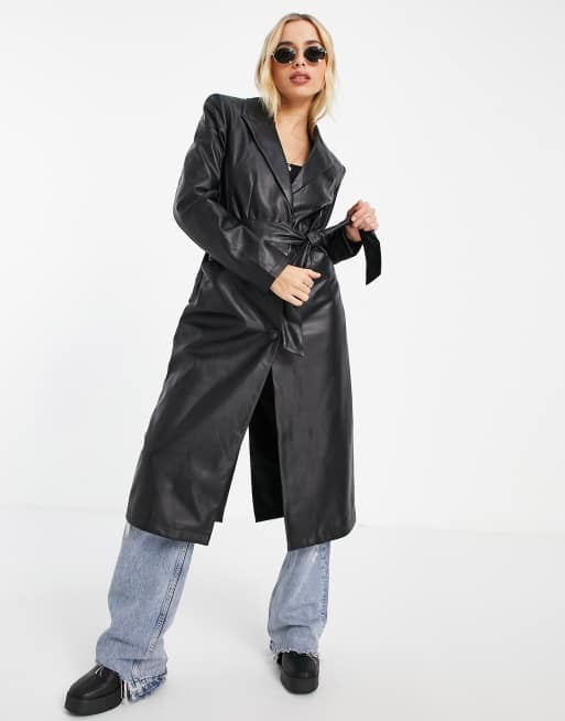 Pimkie - Lange trenchcoat van kunstleer in zwart
