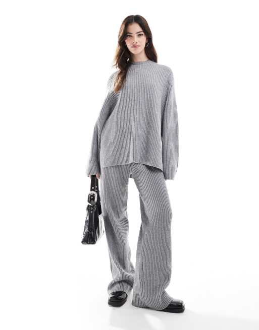 Pimkie - Ribgebreide broek met wijde pijpen in lichtgrijs, deel van co-ord set