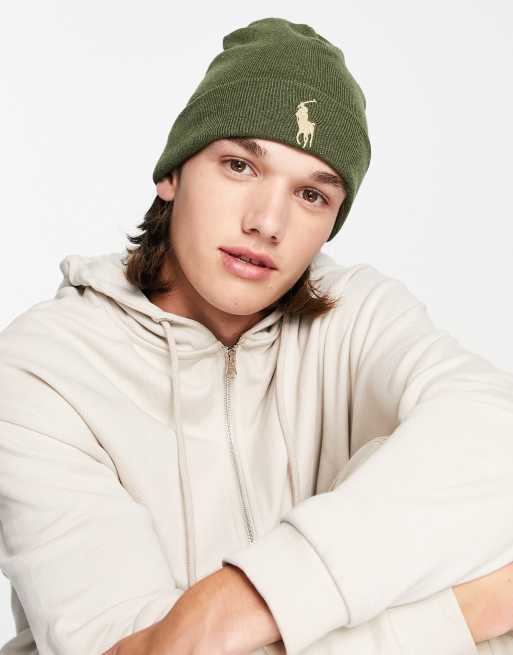 Polo Ralph Lauren - Beanie van pimakatoen met logo in olijfgroen
