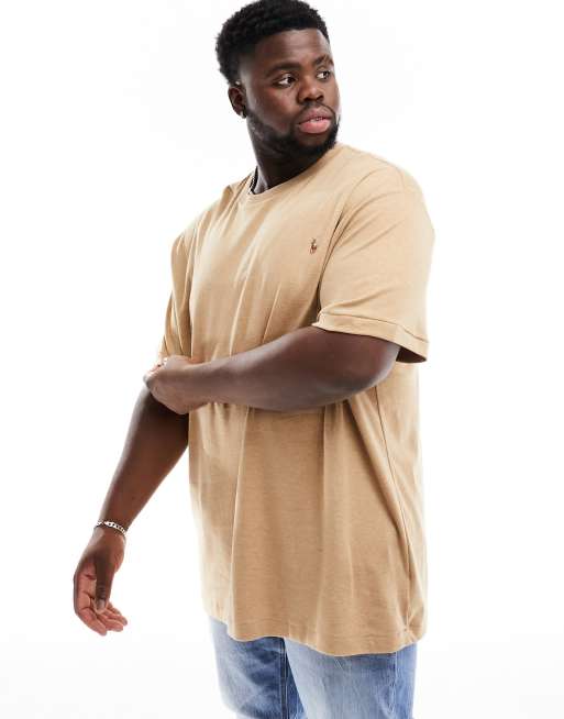 Polo Ralph Lauren Big & Tall - T-shirt van pimakatoen met veelkleurig logo in gemêleerd camel