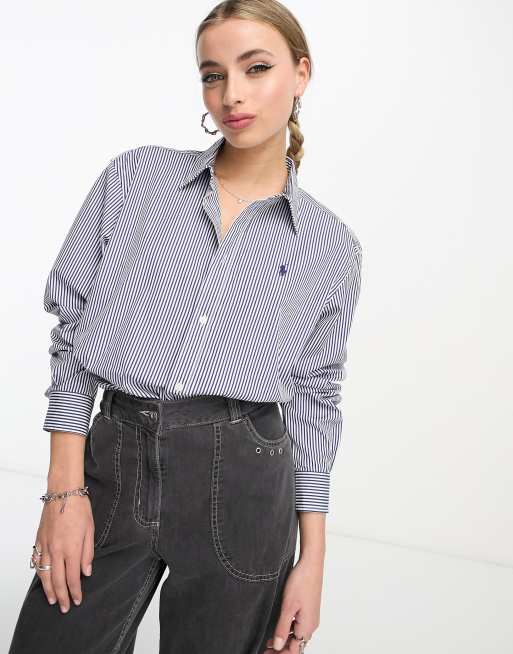 Polo Ralph Lauren - Cropped, recht gestreept poplin overhemd met iconisch logo in blauw