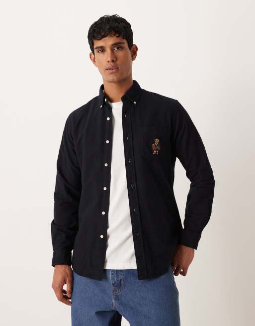 Polo Ralph Lauren - Custom fit oxford overhemd met beerlogo in geborsteld zwart
