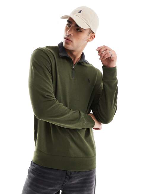 Polo Ralph Lauren - Dubbelgebreid jacquard sweatshirt met icoonlogo en korte rits in donkergroen