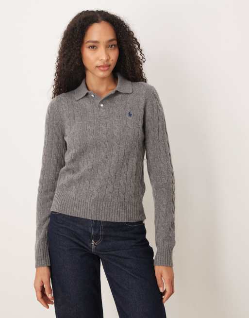 Polo Ralph Lauren - Gebreide polo met kabels en lange mouwen in grijs