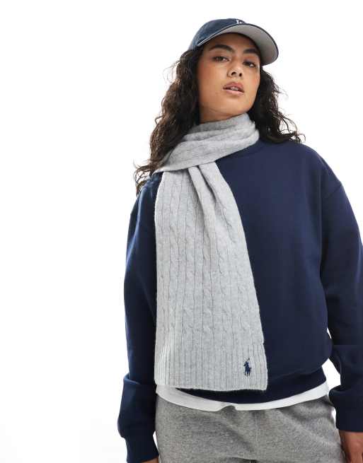 Polo Ralph Lauren - Gebreide sjaal met kabels en icoonlogo in grijs