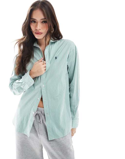 Polo Ralph Lauren - Gestreept overhemd met logo in groen en wit