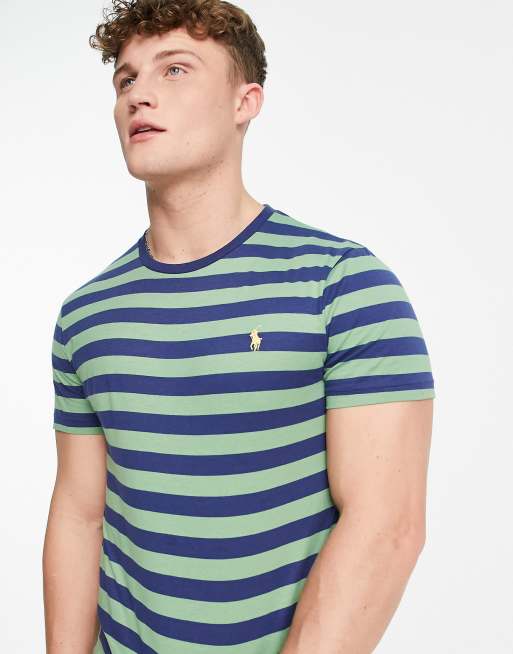 Polo Ralph Lauren - Gestreept T-shirt met iconisch logo in groen/marineblauw