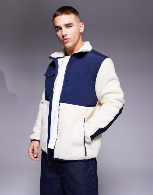 Polo Ralph Lauren - Hybride jack van sherpa borg met icoonlogo in crème/marineblauw